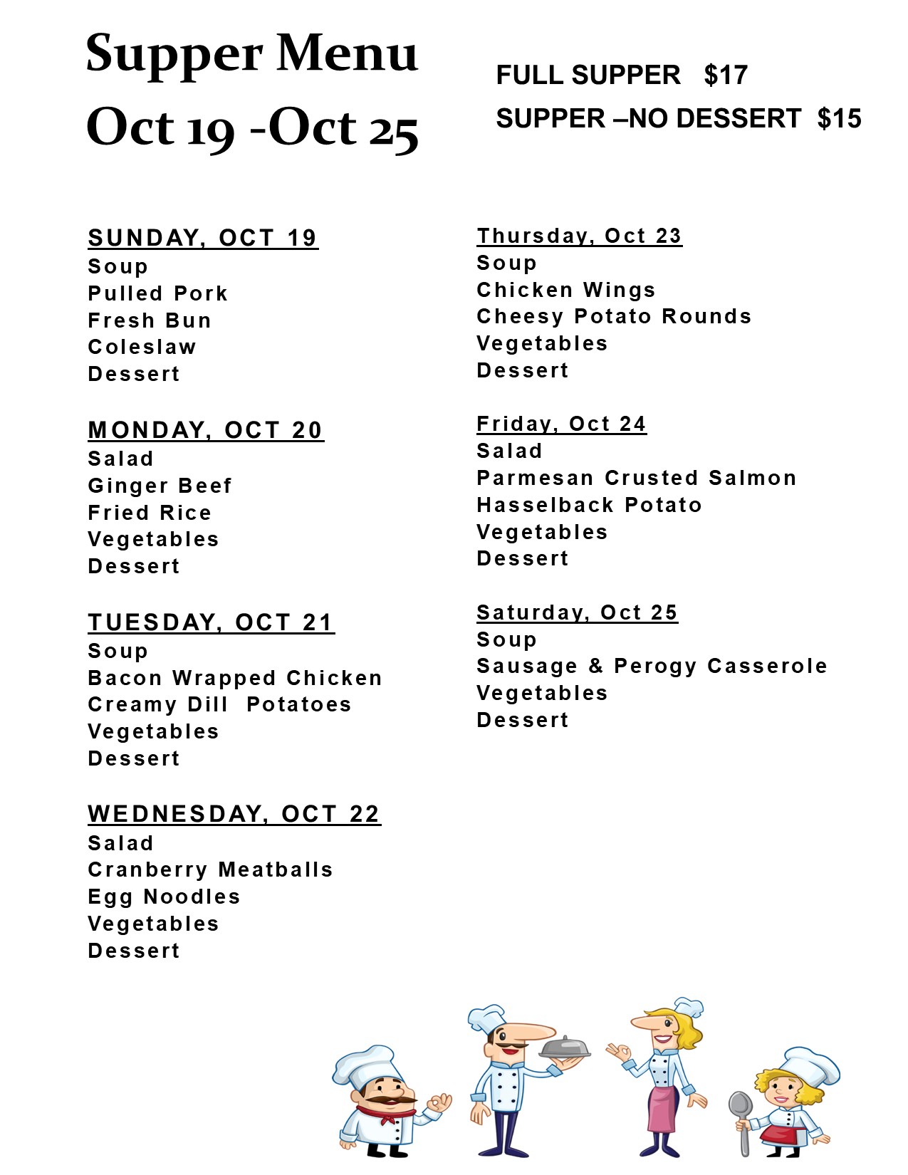 Supper Menu Oct 19 by mcclureadmin | Oct 22, 2025 | 0 comments Submit a Comment Cancel replyYour email address will not be published. Required fields are marked *Comment * Name * Email * Website Save my name, email, and website in this browser for the next time I comment. Δ
